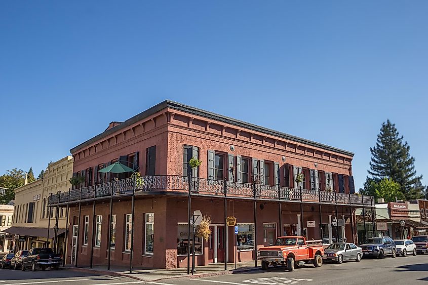 Edificio storico in mattoni rossi a Nevada City, via Marc Venema / Shutterstock.com