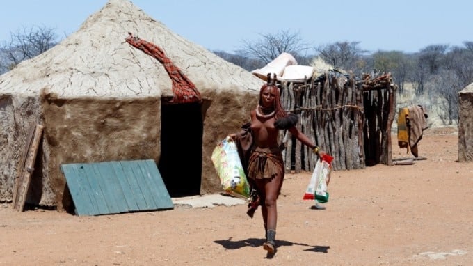 Le case nei villaggi Himba sono strutture cilindriche fatte di argilla di termitai e sterco di mucca. Le donne Himba applicano sulla pelle una miscela di polvere di ocra rossa e grasso animale. Questa pratica non solo protegge la pelle dal sole ma serve anche come forma di igiene poiché le donne Himba non fanno il bagno nell'acqua. Il popolo Himba segue uno stile di vita poligamo e l'allevamento dei figli è spesso uno sforzo comunitario.