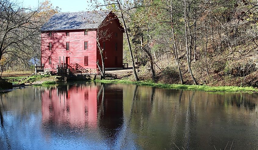 Vicolo Mulino nel Mill Pond, Eminence, Missouri. Credito immagine Ian Peter Morton tramite Shutterstock