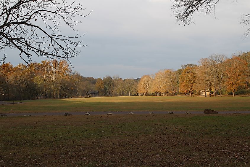 Conosciuto come il centro della regione del vino, St. James è anche uno dei posti migliori del Missouri per i paesaggi autunnali. La vicina foresta nazionale Mark Twain si accende di colori in ottobre, rendendo indimenticabili i viaggi lungo la Highway 68. Più vicino, il Maramec Spring Park è meraviglioso in questo periodo dell'anno, con le sue acque blu brillante che riflettono gli aceri infuocati che circondano la costa. Dopo aver esplorato i sentieri, molti visitatori si dirigono verso le rovine dell'antica Maramec Iron Works all'interno del parco, dove muri in pietra, passerelle e fondazioni di mulini preservate offrono uno sguardo inquietantemente bello sul passato industriale del Missouri del XIX secolo.