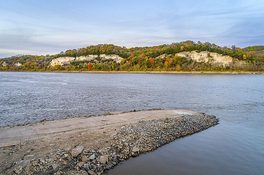 Rocheport è una piccola città fluviale nel Missouri con una grande atmosfera in autunno. I colori di punta di solito colpiscono come la maggior parte di questa parte dello stato, con i più brillanti e audaci che si trovano in autunno, e il Katy Trail è il momento clou. Andare in bicicletta o camminare lungo il sentiero vicino a Rocheport significa intrecciarsi sotto tettoie di alberi dorati, con scogliere da un lato e il fiume Missouri scintillante dall'altro. Le scogliere sopra il fiume sono alcuni dei migliori panorami per i colori autunnali dello stato. Le tradizioni all'aperto continuano nel cuore della città durante l'annuale Rocheport Fall Harvest Festival, quando Main Street si riempie di artigiani locali, musica bluegrass dal vivo e degustazioni di vino dai vigneti vicini.