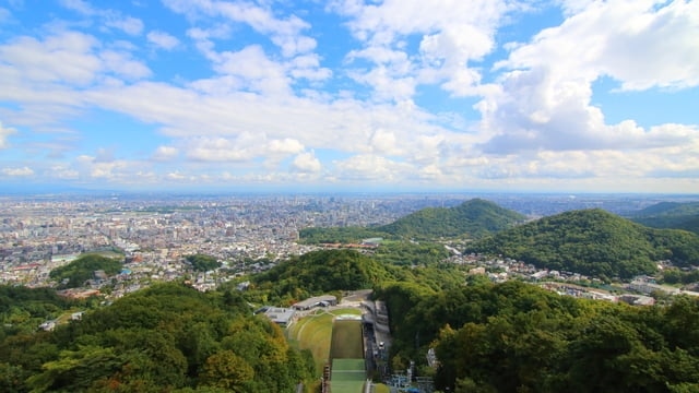 Lo stadio del salto con gli sci di Okurayama è stato utilizzato come sede del salto con gli sci per le Olimpiadi invernali di Sapporo. Dal ponte di osservazione in alto, puoi goderti un'ampia vista della città di Sapporo, compresi siti famosi come il Parco Odori, l'Università di Hokkaido e persino la Cupola di Sapporo in lontananza.