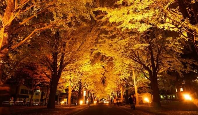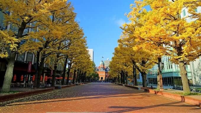 La Ginkgo Avenue presso l'Università di Hokkaido è un famoso luogo turistico che attira visitatori tutto l'anno. Si estende per circa 380 metri ed è fiancheggiata da oltre 70 alberi di ginkgo su entrambi i lati della strada. Durante l'autunno, gli alberi si colorano di un giallo brillante e, mentre le foglie cadono dolcemente, il viale si trasforma in uno scenario mozzafiato.