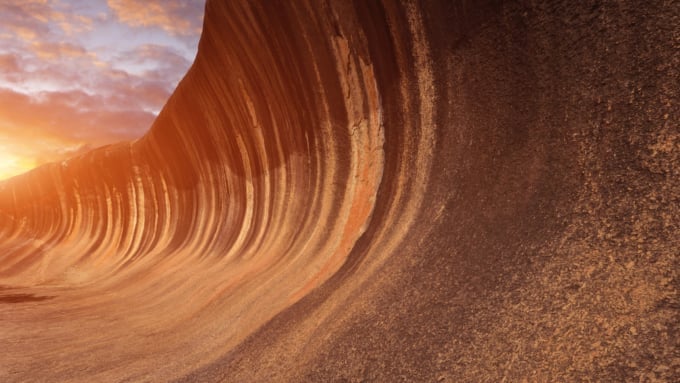 Un'altra attrazione di Wave Rock sono le strisce verticali che aggiungono slancio all'enorme grande onda. Divertiti a guardare gli impressionanti modelli delle onde dal basso e scatta una foto commemorativa in posa da surf!