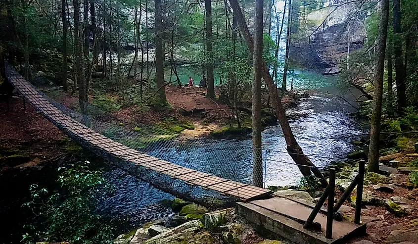 Situato sull'altopiano del Cumberland, il Fall Creek Falls State Park è rinomato per le sue cascate, che sono tra le più alte a est delle Montagne Rocciose. Il parco presenta numerose cascate, ruscelli, gole, caverne e altipiani boscosi, oltre a un resort, cabine, campeggi, un lago, moli per barche e un completo sistema di sentieri escursionistici.