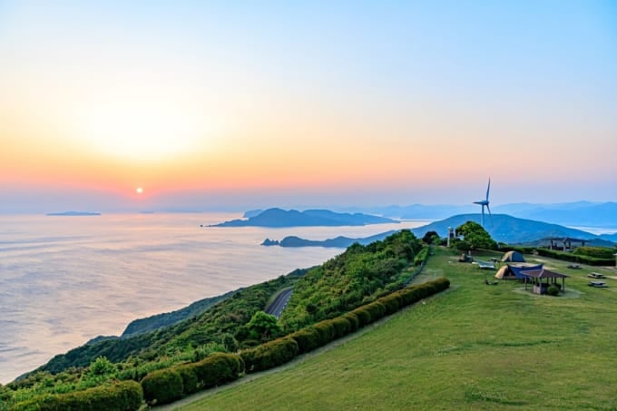 Bisha-no-Hana, situato a Shimonoseki, è il punto più occidentale di Honshu e offre viste mozzafiato sul Mar del Giappone. È famoso come il luogo da cui puoi vedere l'ultimo tramonto su Honshu, rendendolo un'esperienza romantica e tranquilla.