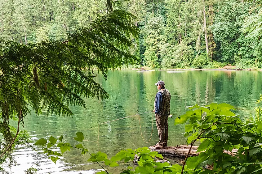 Un pescatore nell'agosto 2019 nel Battle Ground Lake State Park. Immagine: Emily Marie Wilson/Shutterstock.