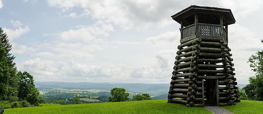 La storica torre di osservazione del Droop Mountain State Park nel West Virginia.