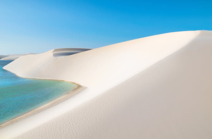 Una visita al Parque Nacional Dos Lençóis Maranhenses ti farà dubitare se stai sognando o sei sveglio. Miglia di alte e ondulate dune di sabbia bianca punteggiate da pozze cristalline di acqua filtrata caratterizzano questo spettacolare paesaggio che può essere attraversato in fuoristrada o a piedi. Quest'ultimo probabilmente ti offre più opportunità di correre su e giù per le dune e tuffarti in piscine rinfrescanti di acqua verde smeraldo ancora e ancora finché non puoi!