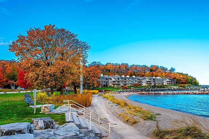 Vista della costa di Sister Bay Town nella contea di Door, Wisconsin.