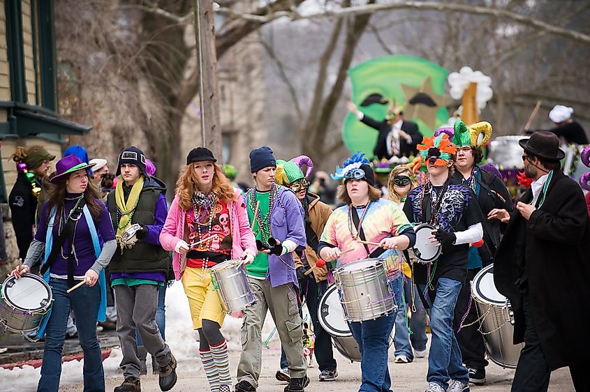Parata del Mardi Gras a Eureka Springs, Arkansas. Credito immagine Deadgekko tramite Flickr.com