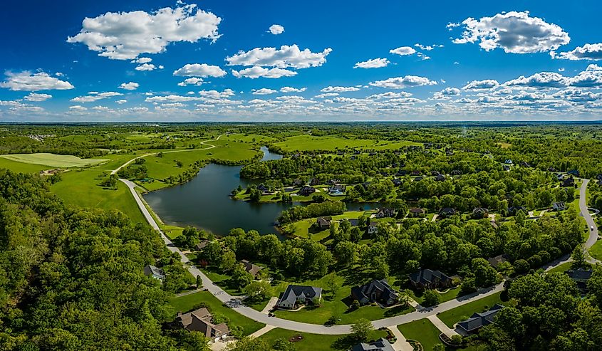 Quartiere residenziale in riva al lago vicino a Georgetown, Kentucky.
