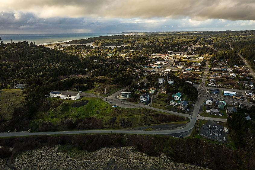 Veduta aerea di Port Orford nell'Oregon.