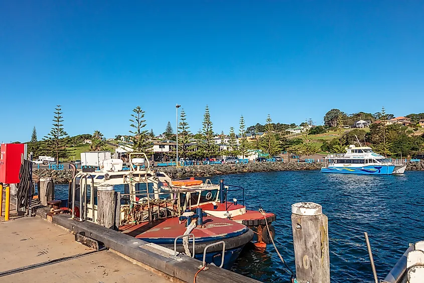 Molo presso il porto di barche da pesca a Eden, Nuovo Galles del Sud. Credito immagine: Debu55y / Shutterstock.com.