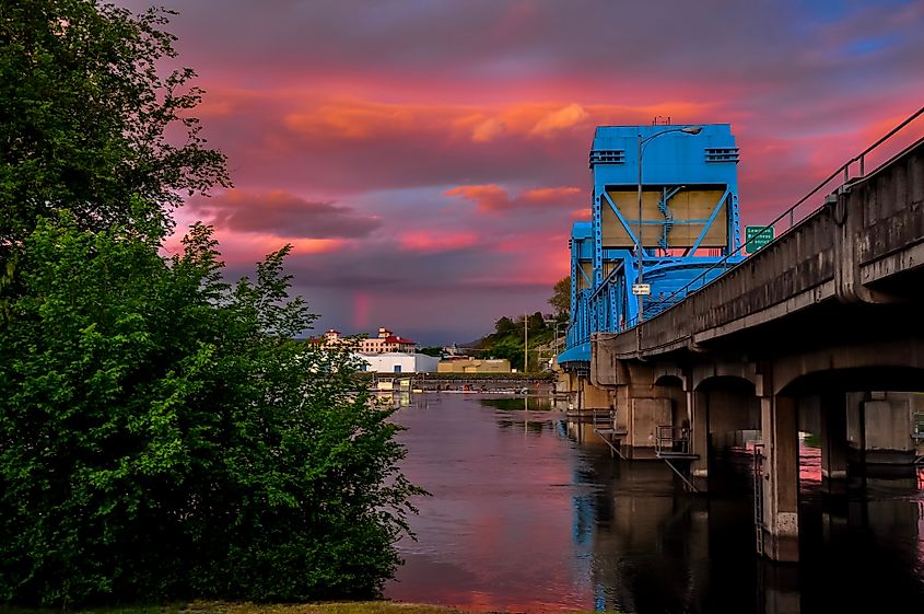 L'Interstate Highway Bridge (il "Ponte Blu") e il fiume Snake visti da Clarkston, Washington.