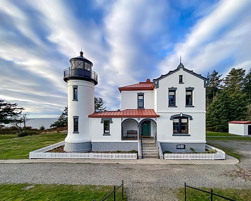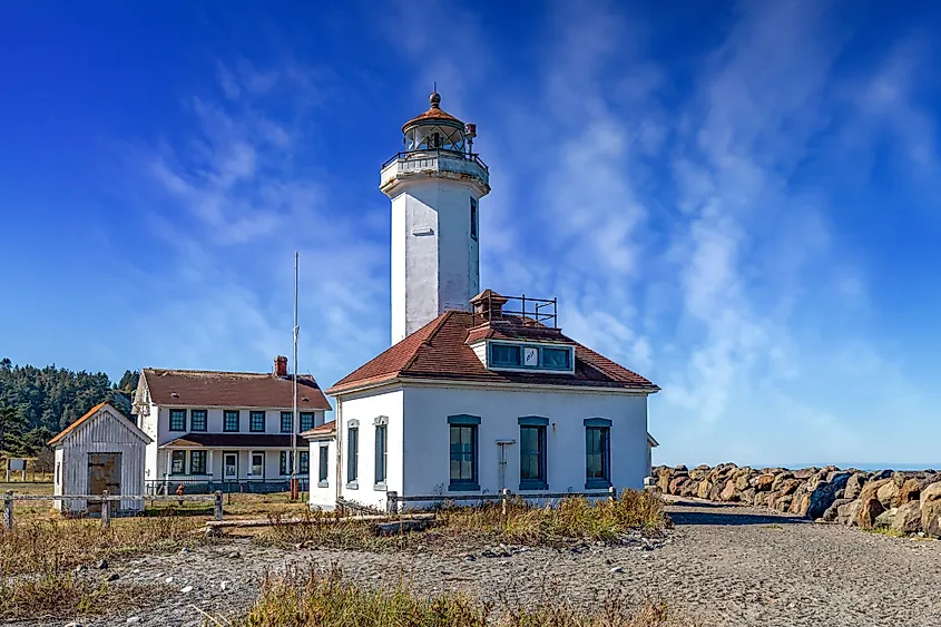 Faro di Point Wilson nel Fort Worden State Park, vicino a Port Townsend, Washington. Credito editoriale: CL Shebley / Shutterstock.com