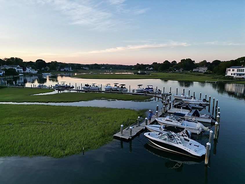 Un porto al tramonto a Old Saybrook, CT. Credito editoriale: creatori di Wirestock / Shutterstock.com
