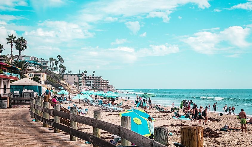 Gente sulla spiaggia di Laguna Beach, California.