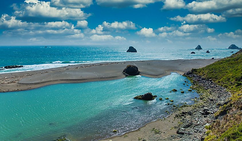 Il fiume Russian sfocia nell'Oceano Pacifico a Jenner, in California.