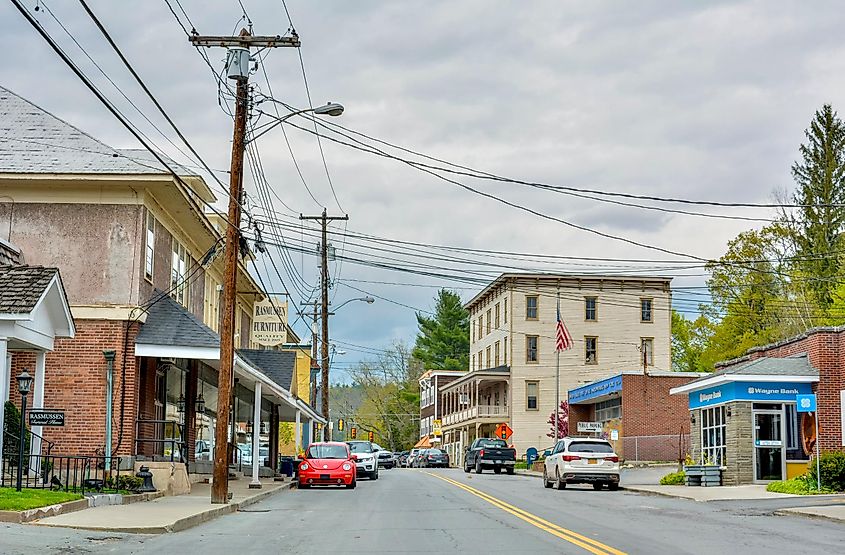 La pittoresca cittadina di Narrowsburg nelle montagne Catskill.