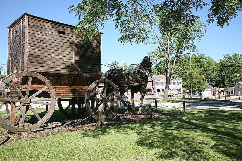 Statua in Mesopotamia, Ohio, vicino a End of the Commons.