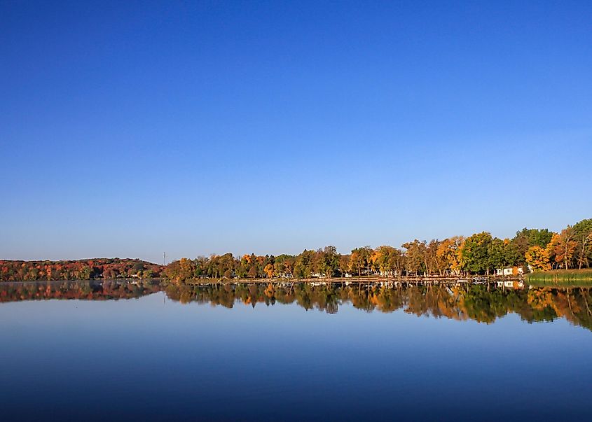 Paesaggio autunnale con lago e alberi, Detroit Lakes, Minnesota