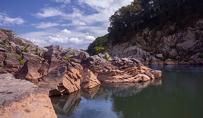 Il fiume Potomac è circondato da imponenti rocce lungo il Billy Goat Trail nel Parco nazionale di Great Falls.