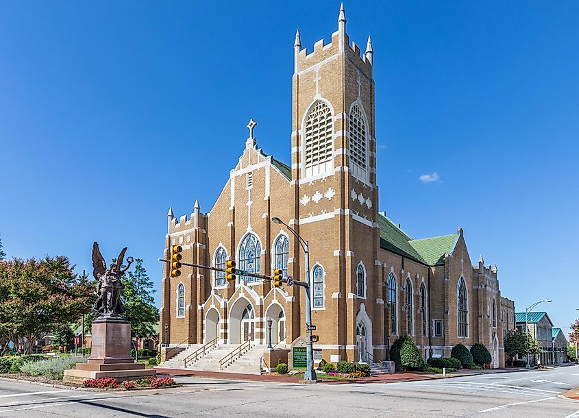 L'edificio della chiesa luterana di San Giovanni si trova nel centro di Salisbury, nella Carolina del Nord, via Nolichuckyjake / Shutterstock.