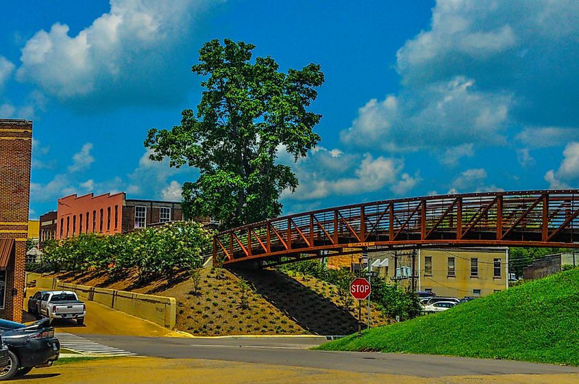 Un ponte lungo Bankhead Street nel quartiere degli affari di New Albany nel Mississippi. Di Timberwolf62 - Opera propria, CC BY-SA 4.0, Wikimedia Commons.