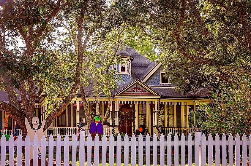 La storica Alfred F. Dantzler House è decorata per Halloween a Moss Point, Mississippi. Crediti editoriali: Carmen K. Sisson / Shutterstock.com.