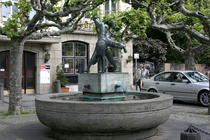La piazza Radschlag Brunnen è una bellissima fontana antica, situata nel centro della città in Burgplatz. La superba fontana è strategicamente posizionata di fronte alla grande taverna, vicino al Reno. La sua architettura straordinariamente bella attira persone di ogni ceto sociale consentendo un'interazione universale. Il disegno artistico di due bambini che giocano facendo la ruota adorna la parte superiore della fontana.