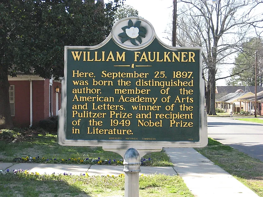 Memoriale del luogo di nascita di William Faulkner a New Albany, Mississippi. Credito immagine: Joseph tramite Flickr.com.