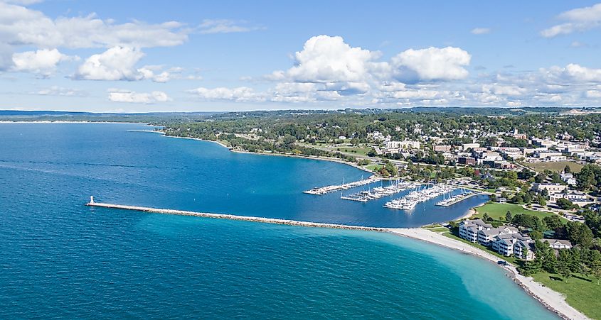 Veduta aerea del porto turistico di Petoskey, Michigan.