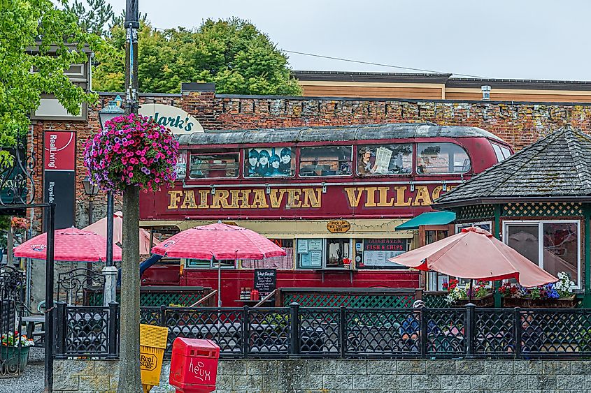 Un autobus Fish and Chips a Fairhaven, Washington.