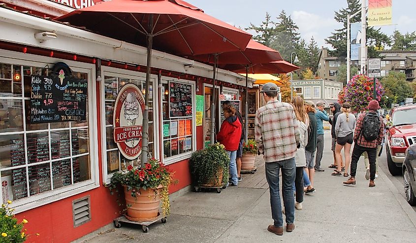 Clienti della Friday Harbor Ice Cream Company. Credito immagine The Image Party tramite Shutterstock