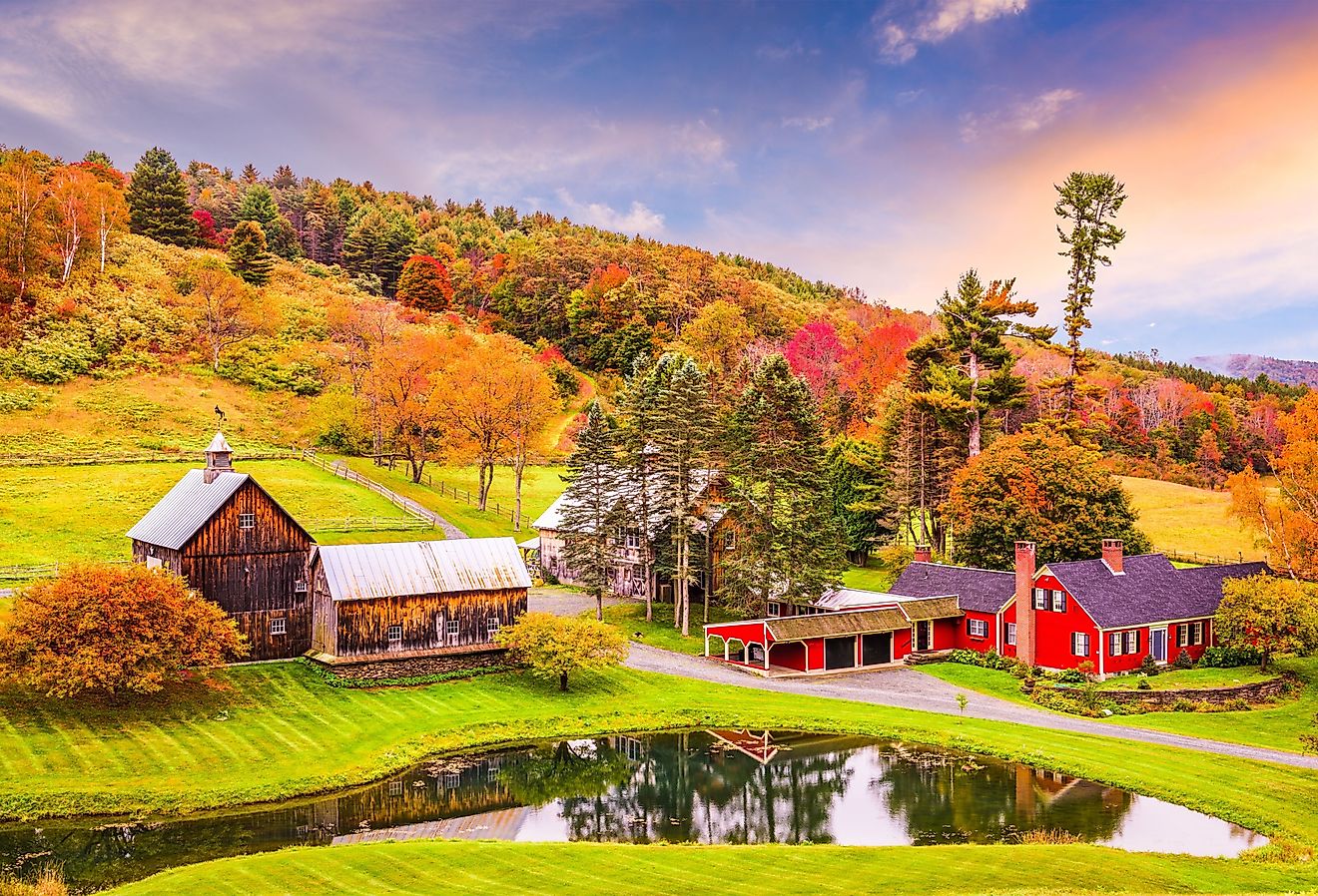 Scena rurale nel Vermont, USA, all'inizio dell'autunno.