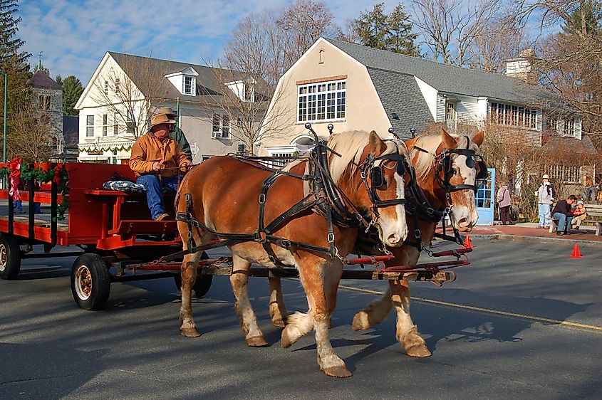 Un cavallo e un buggy nel centro di Stockbridge durante le festività natalizie. James Kirkikis/Shutterstock.com