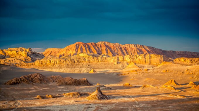 Conosciuto per essere il luogo più arido della terra, la vasta distesa di terra del deserto di Atacama comprende paesaggi incredibili insieme a una quantità sorprendente di fauna selvatica e insediamenti per un'area così apparentemente arida. La maggior parte dei visitatori si dirige a San Pedro de Atacama, una storica città cilena nel deserto non lontano dall'incredibile catena montuosa delle Ande. Da qui è facile esplorare alcuni degli splendidi paesaggi circostanti come la Valle de la Luna e il Salar de Atacama. Il deserto è anche un'area popolare per condurre osservazioni astronomiche con un clima che generalmente consente cieli sereni, illuminati di notte da centinaia di stelle.