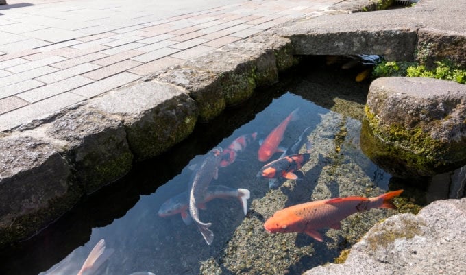 Shimabara è famosa come la "Città delle Koi che nuotano", dove carpe colorate nuotano con grazia attraverso canali limpidi. Shimabara Yusui-kan è un'area di sosta aperta al pubblico, gratuitamente, per i viaggiatori che esplorano i siti di sorgenti naturali di Shimabara.