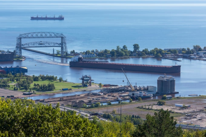 L'Aerial Lift Bridge è un ponte sollevatore verticale che attraversa il canale navale di Duluth. Costruito per la prima volta nel 1905, fu ricostruito nel 1929 e da allora è rimasto un punto di riferimento iconico. Ha una distanza di 180 piedi quando sollevato. Con una lunghezza di 386 piedi e un peso di circa 900 tonnellate, è senza dubbio una meraviglia dell'ingegneria. Questo, combinato con la sua assoluta bellezza, forse lo ha reso il punto di riferimento più fotografato di Duluth. Guardare le grandi navi navigare attraverso questo ponte è uno spettacolo da vedere.