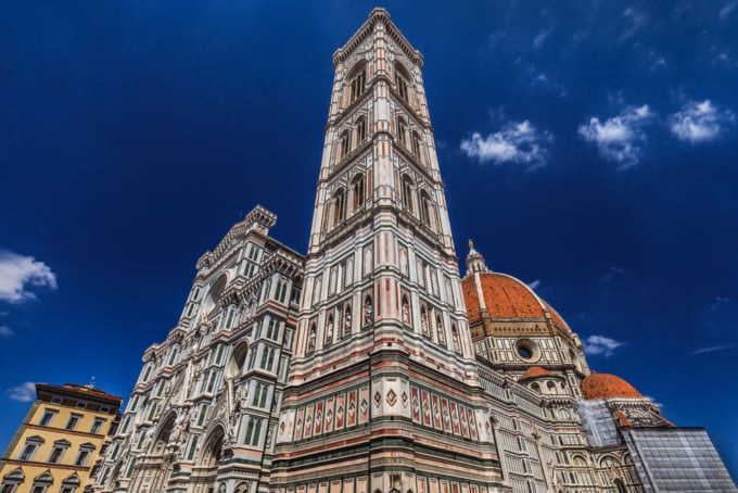 Una delle strutture più belle che risalta anche nell'incredibile città di Firenze, il Campanile di Giotto troneggia sul complesso della cattedrale di Firenze. L'architettura e gli intricati motivi che adornano la torre sono stupendi, ma la parte più mozzafiato è sicuramente la vista panoramica dall'alto. Anche se dovrai salire un totale di 414 gradini per arrivarci, ne vale la pena per la splendida vista sulla pittoresca città di Firenze.