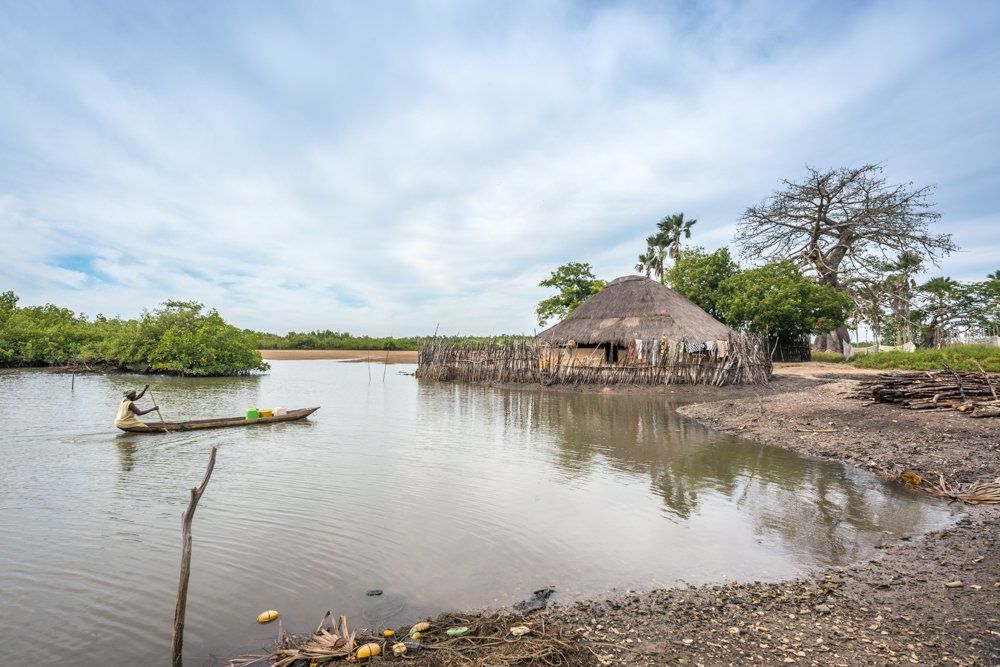 Gran parte della costa della Guinea Bissau è bassa e ricoperta di mangrovie, quindi gli abitanti dei villaggi utilizzano canoe per spostarsi anziché automobili e strade.