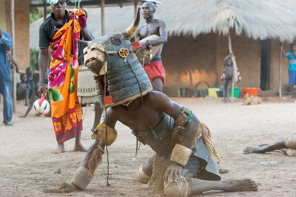 Gli abitanti del villaggio di Agande sull'isola di Uno (mostrati qui) sono noti per essere più potenti in questa danza rispetto ad altri. Gli spiriti vengono da loro mentre ballano e sono gli spiriti, secondo la tradizione locale, che danno all'uomo il suo potere.