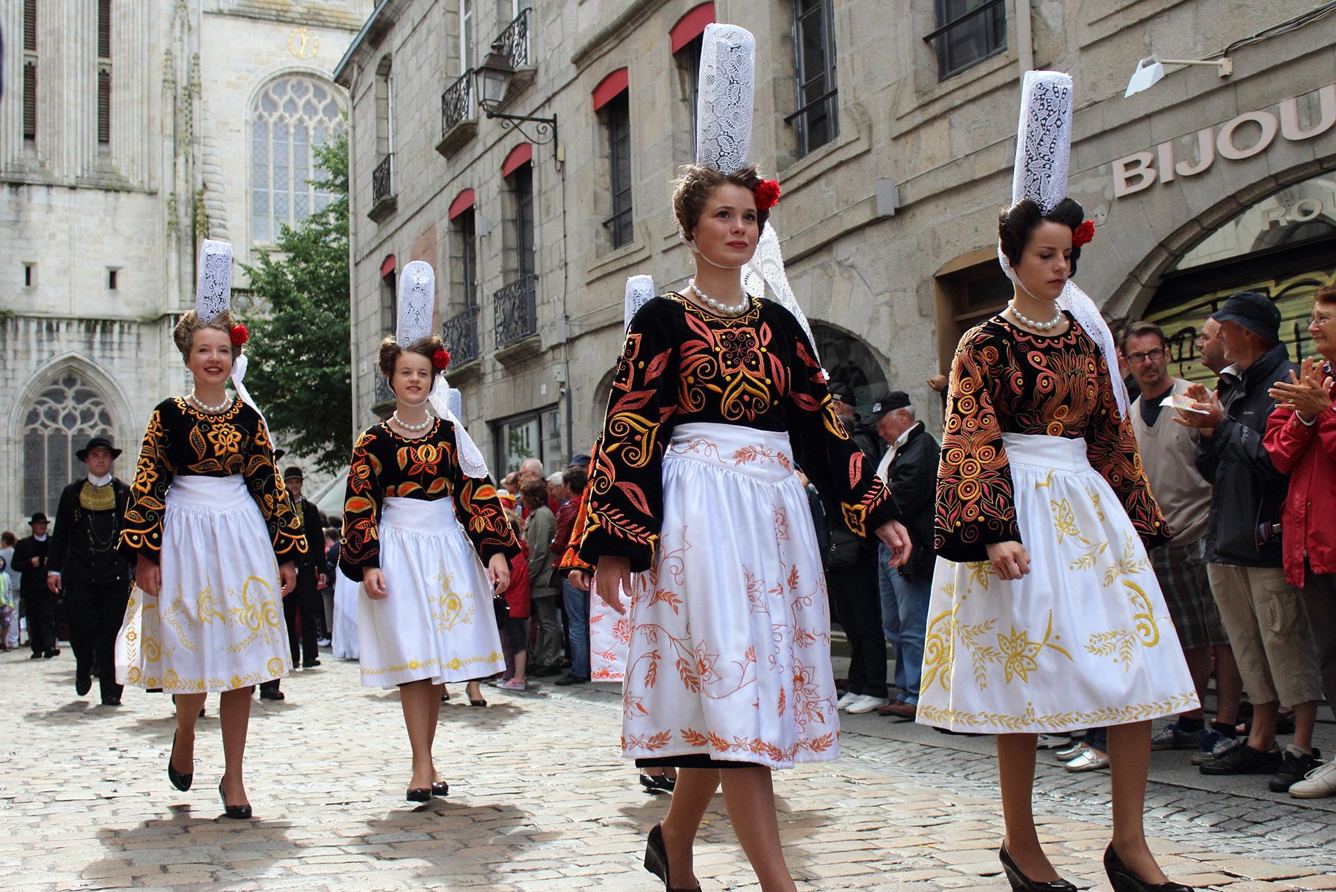 Una coiffe è un intricato copricapo di pizzo indossato come parte dei costumi popolari della Bretagna, in Francia, anche se ora visto solo per le feste locali o per la grazia. Il più sorprendente è il bigouden coiffe, proveniente dalla zona intorno a Pont L’Abbé, un cilindro di pizzo inamidato che raggiunge un’altezza sorprendente di 30-40 cm.
