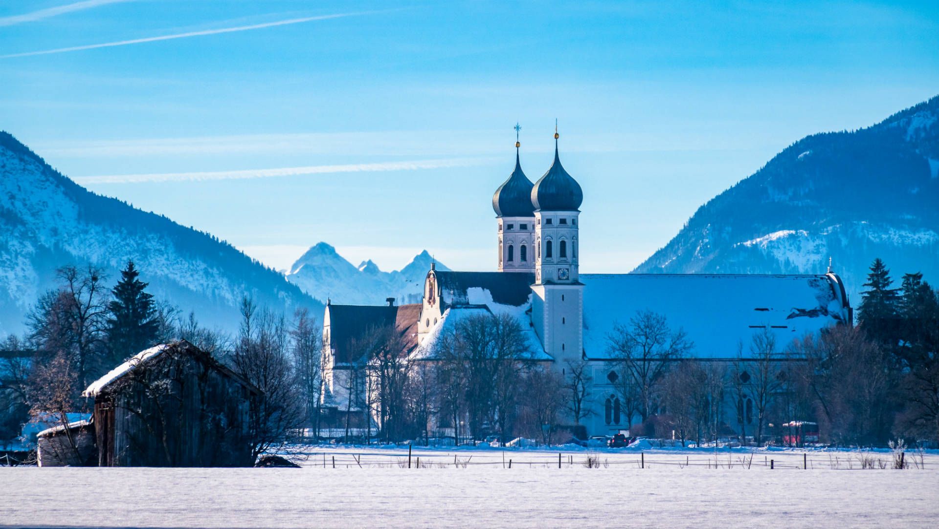 Chiesa bavarese con la livrea del paese delle meraviglie invernale © Shutterstock