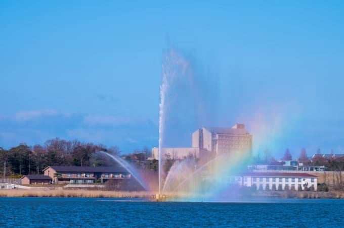 Nota: da dicembre 2024, la grande fontana sul lago Shibayamagata non sarà operativa a causa di danni al cavo sottomarino causati da un terremoto. Si prega di controllare il sito web ufficiale di Katayamazu Onsen per gli ultimi aggiornamenti.
