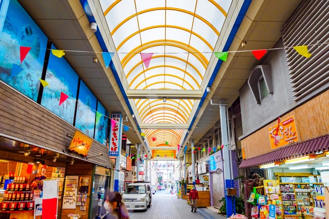 Dato che il centro commerciale è coperto da un porticato, puoi fare acquisti comodamente indipendentemente dal tempo. Se hai bisogno di una pausa dallo shopping, ci sono moltissimi bar dove rilassarti. È il posto perfetto per ritirare tutti i tuoi souvenir di Ishigaki!
