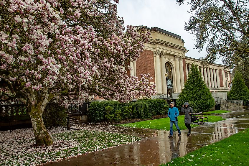 Una giornata piovosa nel campus OSU di Corvallis, Oregon. Crediti editoriali: Bob Pool/Shutterstock.com.