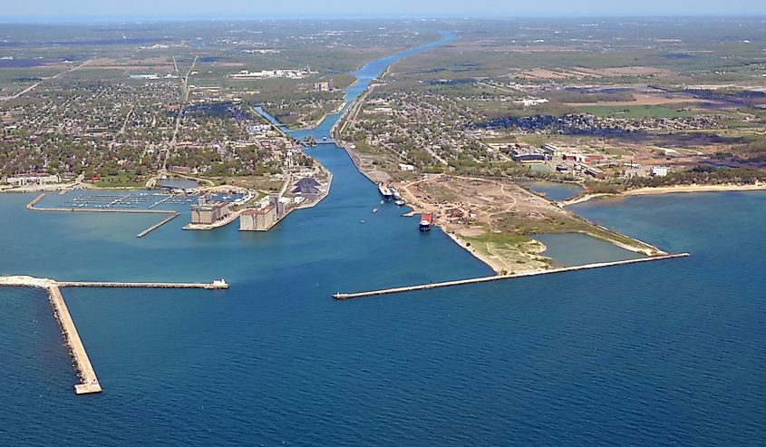 Vista del canale Welland, ingresso del lago Erie a Port Colborne. Credito immagine Foto SF tramite Shutterstock.