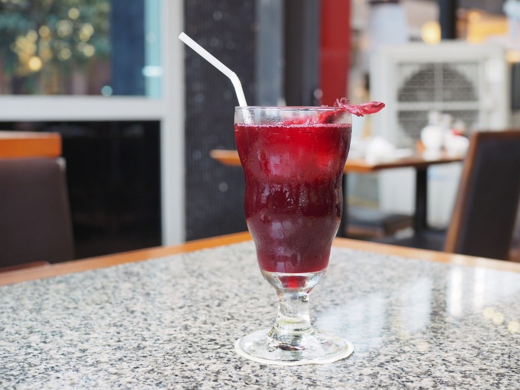 I fiori di ibisco rosso della pianta dell'acetosella (da non confondere con l'acetosella che si trova nei climi più freddi) vengono bolliti insieme agli altri ingredienti per creare una bevanda deliziosa e salutare.